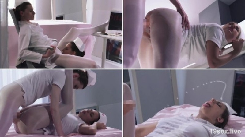 【クレアジ:00409】白い部屋で白衣を着用した色白の清楚な美女ナースが二人でペニパン装着ハメをして大量射精なレズプレー作品